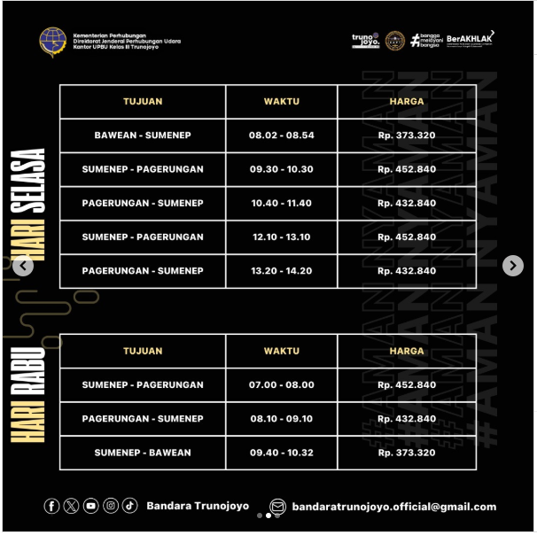 Pada Tahun 2025 Penerbangan perintis di Bandara Trunojoyo melayani rute :